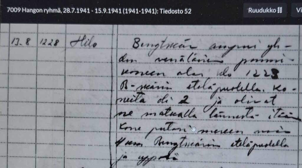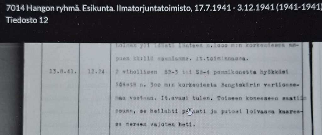 Jatkosotaa oli ehditty käydä pari kuukautta kun kaksi venäläistä SB-3 (mahdollisesti SB-4) konetta hyökkäsi matalalla idästä Bengskärin vartioasemaa vasten. Kun IT avasi tulen nähtiin toisen koneen saaneen osuman ja se putosi loivassa kaarteessa mereen n. neljän kilometrin päähän majakan eteläpuolelle.